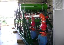 nylon-bristled brushes that flow through the tubes for cleaning. A custom-manufactured, four-way reversing valve is installed